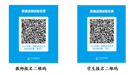 本次报名设置“教师”和“学生”两个报名通道。请拟参加测试的师生使用支付宝扫描下方相应二维码报名并缴纳测试费。