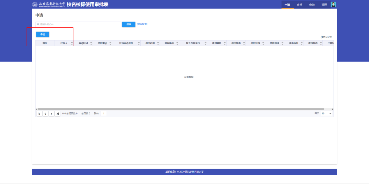 (1)PC端申请界面如下图: