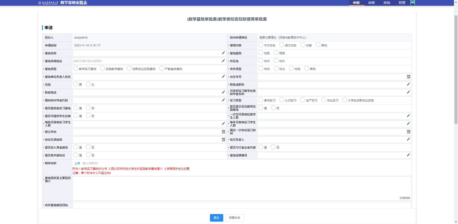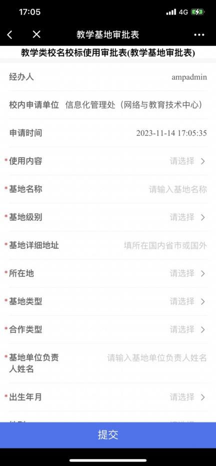 教学基地审批表申请界面如下图