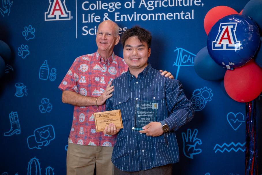 当地时间5月8日,钱镕同学出席了亚利桑那大学举办的颁奖午宴,同时获得了环境学院与农业、生命和环境学院颁发的“Outstanding Senior Award”。作为首位获此奖项的中国学生,钱镕在午宴上发表精彩演讲。他充分肯定了两校合作项目的教学质量及其在培养学生国际竞争力方面的优势,向西北农林科技大学、亚利桑那大学的全体教职工,特别是资源环境学院中外合作办学办公室对此次访学的支持表示衷心感谢。钱镕表示,作为首位由微校园前往主校区交流的学生,他希望以此为契机,进一步深化两校在教学质量、国际影响力和学生综合素质发展等方面的合作。