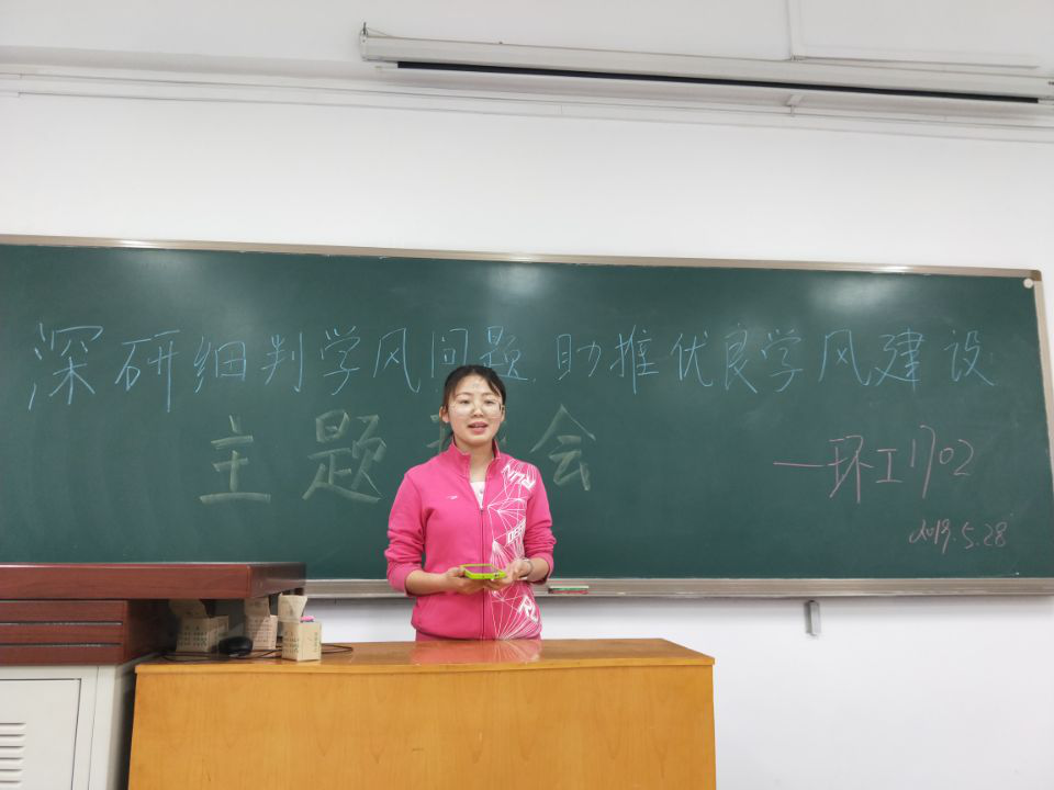 5月28日,环境工程专业1702班在北校区8402教室,以“深研细判学风问题,助推优良学风建设”为题举办了主题班会,班会内容包括:毕业所需学积分要求、学籍管理及内容、缓考流程、考试纪律、学积分评算方法和转专业问题,以及《扫黑除恶50问》。