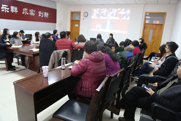 3月5日上午9时,资环学院组织没有课的老师和研究生在学院307会议室集体收看“十三届全国人大二次会议开幕式”直播实况,认真聆听了李克强总理在大会上作的政府工作报告。学院党委书记闫德忠、院长吕家珑与师生一起收看,还有其他老师和学生也分别在学习室、办公室计算机前或手机上同时收看。会后,李克强总理的政府工作报告引发了广大师生纷纷热议。