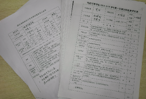 第二阶段,邀请了学院督导组和学校督导组部分专家,重点检查试卷命题质量、教师试卷评阅规范和教学档案整理归档情况。包括试卷袋内材料是否齐全、合分是否正确、近两个专业年级同一门课程A、B卷四套试题的重复率、考试卷面成绩不及格率等。问题较多的试卷,做到及时反馈,即查即改。教学办立即通知教师到检查现场和专家面对面交流,专家进行手把手指导整改。督导组专家针对每一份试卷填写了《资源环境学院2018-2019年第一学期试卷检查评价表》,并对不足的地方提出了许多合理性整改意见及建议,并按照学校要求评出前10%和后10%的命题和阅卷教师各5人。
