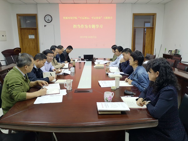 10月7日下午,学院在307会议室开展“不忘初心、牢记使命”主题教育党委中心组第五次集体学习,围绕“担当作为”专题研讨如何加强和改进思想政治工作。学院党委书记闫德忠主持并解读习近平总书记在全国宣传思想工作会议重要讲话精神,党委副书记田长河、副院长王旭东作重点发言,学院班子成员、党委委员、党政办公室主任、党务秘书、分团委书记、学工秘书参加学习和交流研讨。