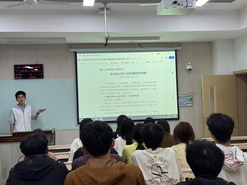 本次政治理论学习开始,主讲人阐述了本次政治理论学习围绕“全面贯彻落实党的二十大精神,不断提高资源环境学院学生会的政治理论水平和综合素质”的主题开展。随后,他通过理论材料和生动讲述,从“平语近人 敦本务实”、“慎终追远 英魂永祀”、“二五盛会 国是新章”、“精神图谱 血脉赓续”、“黄钟大吕 时代先声”、“真理论道 实践明灯”六个专题出发,全面介绍了有关党的二十大及二十届二中、三中全会精神的政治理论。