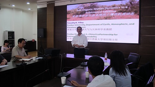 6月18日下午,应我院邀请,普渡大学大气和行星科学系Timothy R. Filley教授在国际交流中心210会议室为我校师生做了题为“退化草原生态系统的灌丛化过程中的土壤有机质富集的控制因素”的学术报告。报告会由高亚军副院长主持。