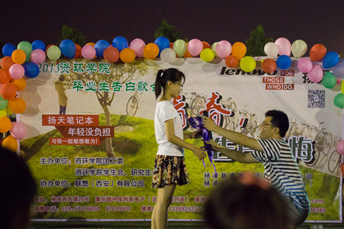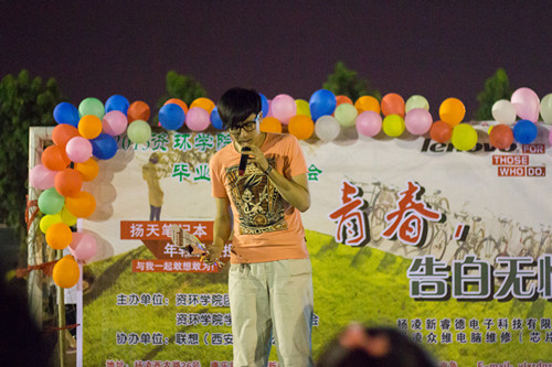 霜雪一肩,征程漫漫;无悔青春,奋勇向前。为欢送2013届毕业生离校,6月23日晚,资环学院在南校区田径场举办“青春,告白无悔”2013届毕业生歌会。资环学院党委副书记薛建鹏,毕业班班主任、辅导员与近400名本科、硕士毕业生们共同在欢歌中度过了毕业前最美好的时光。