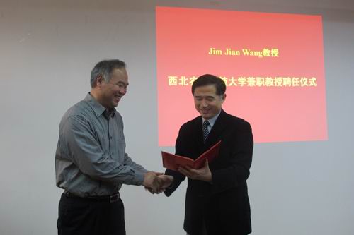侯曦副校长为王健教授颁发了聘书,他希望王健教授作为兼职教授与资环学院在科研及研究生培养等方面密切合作,取得好的成绩。