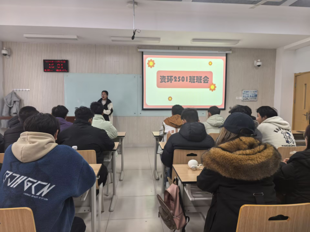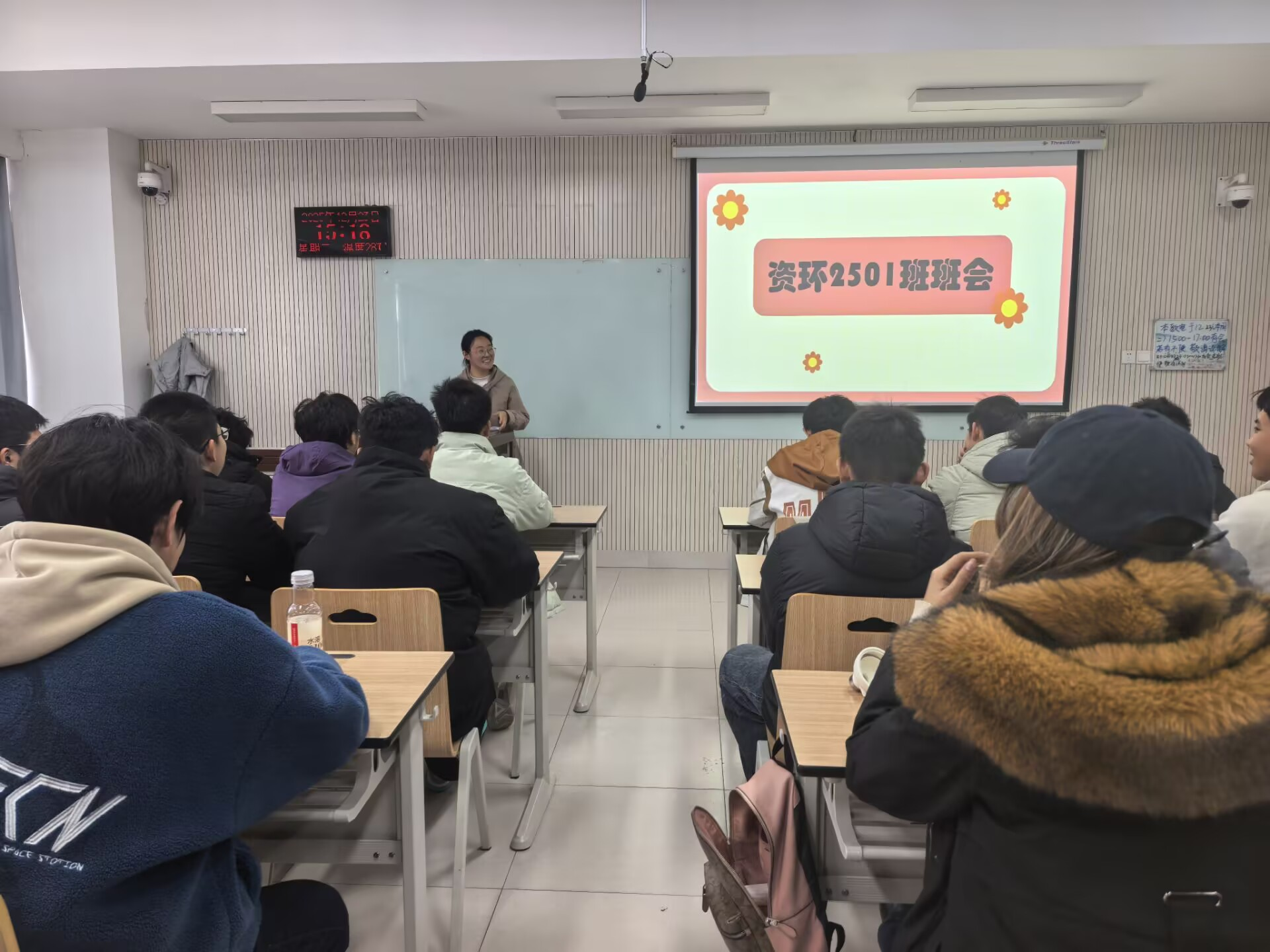 凛冬已至,朔风拂面,寒意却丝毫未能消减资环2501班同学们炽热的学习热情。12月23日下午3点,班级第三次班会在教室N8207举行。临近期末考试,本次班会旨在帮助同学们更好适应大学学习节奏、明确复习方向、解答学业困惑、熟悉考试规则,特邀蔡佳蒙与和怡伶两位同学,为大家分享独到的学习心得与实用备考技巧。教室里目光灼灼,期待满盈,一场干货满满的学习经验分享会就此拉开序幕。