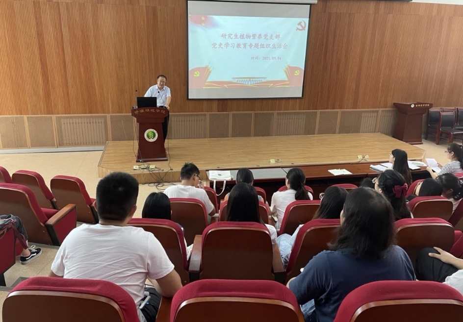 2021年9月5日,研究生植物营养党支部召开党史学习教育专题组织生活会,会议由支部书记张庆玮老师主持,联系支部的学院党委委员、学院党委副书记、学院院长田霄鸿列席会议。
