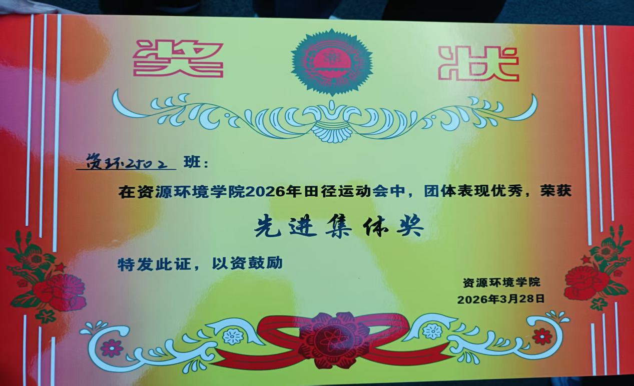 在本次院运会中,我班全体同学齐心协力、奋勇拼搏,以饱满的热情和昂扬的斗志投入各项比赛。赛场上,运动员们全力以赴、挑战自我;赛场下,同学们文明观赛、呐喊助威,展现出良好的班风风貌。经过大家的共同努力,我班最终荣获先进集体奖和精神文明奖两项荣誉。这份荣誉,是对我班运动实力与精神风貌的双重肯定,更是班级凝聚力与向心力的最好见证,彰显了资环2502班团结向上、永不言弃的青春风采。